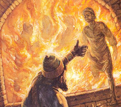 “24 Then King Nebuchadnezzar was astonished and rose up in haste. He declared to his counselors, “Did we not cast three men bound into the fire?” They answered and said to the king, “True, O king.” 25He answered and said, “But I see four men unbound, walking in the midst of the fire, and they are not hurt; and the appearance of the fourth is like the son of the gods.” Daniel 3: 21.24-27 KJV